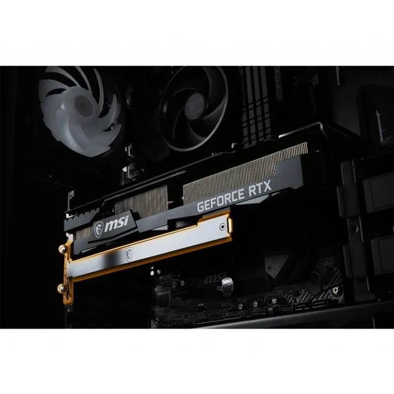 Preparada para la realidad virtual, con soporte para DirectX 12.0 y OpenGL 4.6, esta tarjeta gráfica también cuenta con la tecnología NVIDIA G-SYNC, asegurando una experiencia de juego fluida y sin interrupciones. El diseño incluye un sistema de enfriamiento activo con la innovadora tecnología MSI TORX Fan 3.0 y 3 ventiladores, manteniendo la tarjeta a una temperatura óptima incluso durante sesiones intensas de uso.