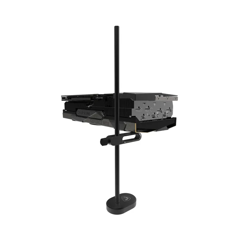 Soporte de Tarjeta Gráfica MSI Graphics Card Holder con altura regulable de 30 mm a 300 mm, soporta hasta 2.5KG, fabricado en aleación de aluminio.
