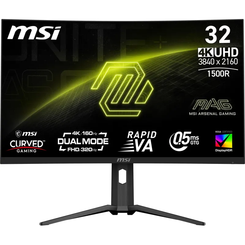 Monitor MSI MAG 321CUPDF con pantalla 4K de 31.5 pulgadas, tecnología VA curva, frecuencia de actualización 160 Hz y compatibilidad AMD FreeSync