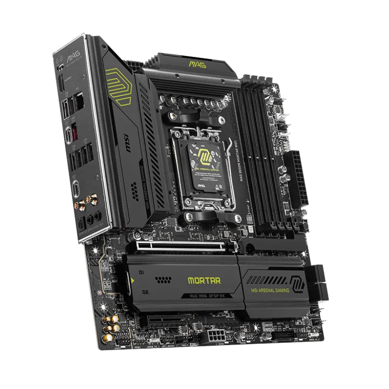 Placa Base MSI MAG B850M MORTAR WIFI con soporte para memoria DDR5 8200 MT/s, conectividad avanzada y Wi-Fi 7 integrado para alto rendimiento.