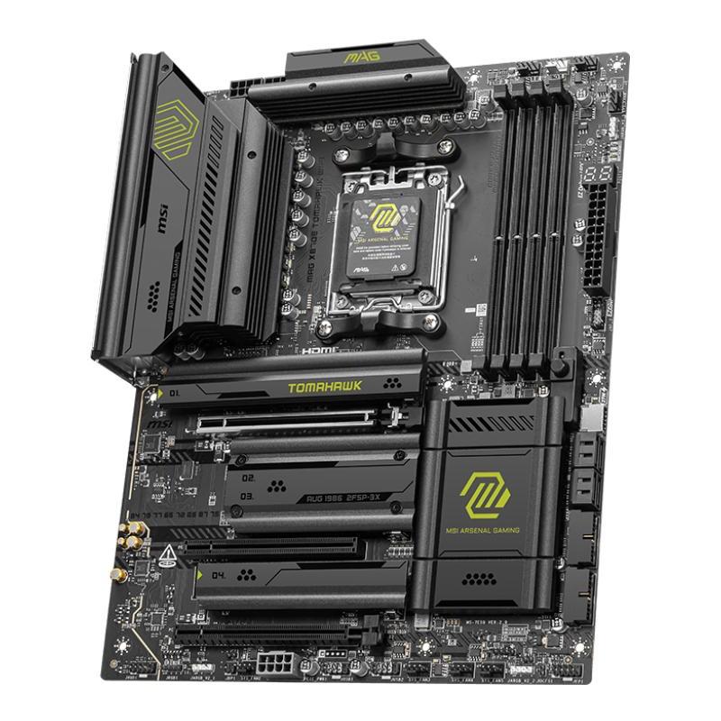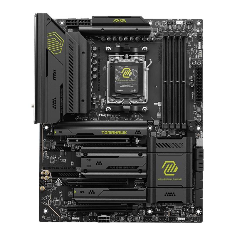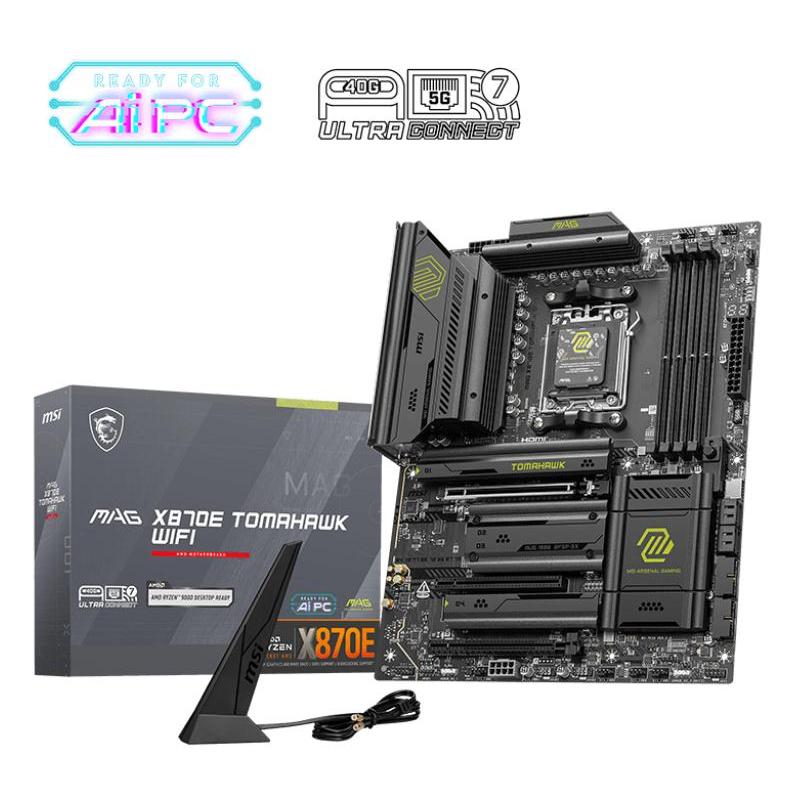 MSI X870 TOMAHAWK WIFI TÍTULO: MAG X870E TOMAHAWK WIFI está diseñado para jugadores con una base estable, duradera y amigable para el bricolaje en sus construcciones de PC. Con una verdadera solución Wi-Fi 7, LAN 5G, USB 40Gbps, soluciones PCIe 5.0, energía PCIe suplementaria y características exclusivas de bricolaje fácil, está listo para el campo de batalla de los procesadores AMD Ryzen™ serie 9000.