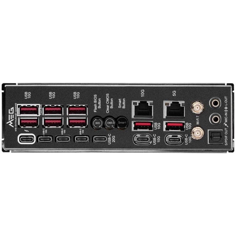 CONEXIONES DE VANGUARDIA: Esta placa Base MSI MEG Z890 GODLIKE no se detiene ante nada. Equipado con dos puertos Thunderbolt™ 4, ofrece transferencia de datos ultrarrápida a través de USB Type-C, compatible con resoluciones de hasta 8K. La flexibilidad de estas conexiones es increíble, permitiéndote conectar pantallas de alta resolución y una amplia variedad de dispositivos externos sin perder un solo fotograma. Además, gracias a los puertos USB 3.2 y la capacidad de conectar hasta cinco dispositivos Thunderbolt 3, la conectividad nunca será un obstáculo.