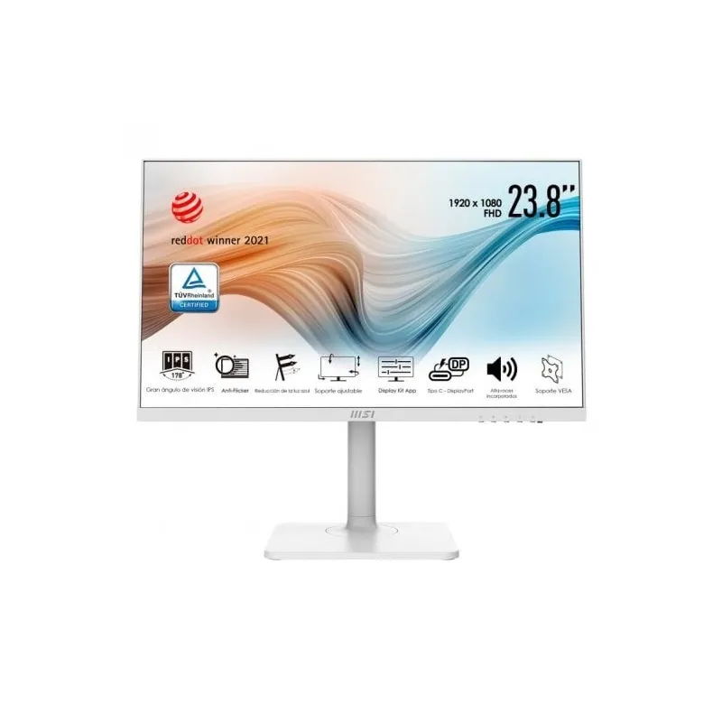 - Monitores de la serie Modern MD241P MSI: 23,8", Full HD, Less Blue Light, Anti-Flicker, Anti-Glare, Display Kit, soporte VESA Mount &Altavoces integrados.