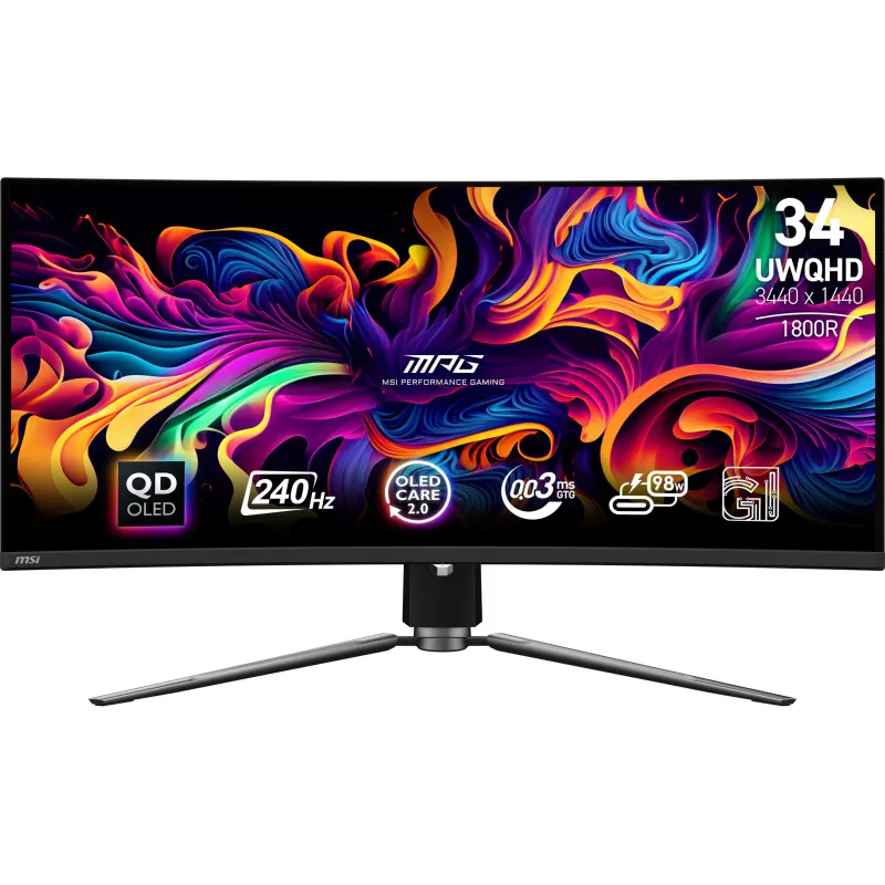 Monitor: MSI MPG 341CQPX QD-OLED 34 UWQHD. QD-OLED 240 Hz y 0,03 ms GtG, curva 1800R y USB-C con hasta 98 W para portátil en mesa