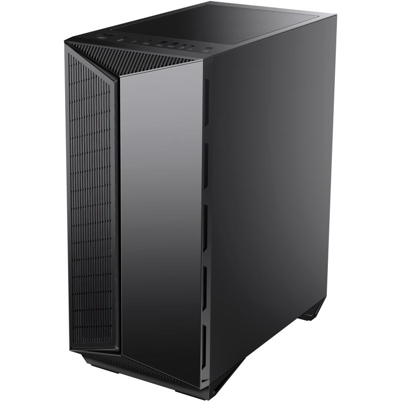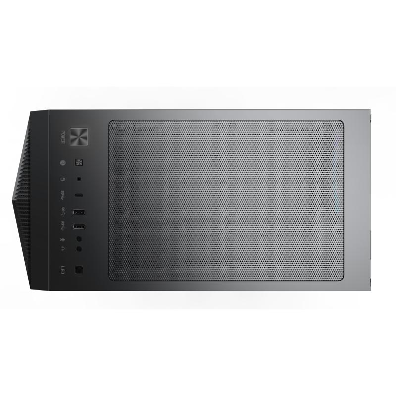 La refrigeración es altamente optimizable, con tres ventiladores frontales de 120 mm preinstalados, soporte para radiadores de hasta 360 mm en la parte frontal y capacidad para enfriamiento líquido. El filtro anti-polvo mantiene el sistema limpio y la ubicación de la fuente de alimentación en la parte inferior mejora la estabilidad. Ofrece puertos USB 3.2 Gen 1 tipo A y un puerto USB 3.2 Gen 2 tipo C para conexiones rápidas. Con dimensiones compactas de 215 mm x 430 mm x 450 mm y un peso de 7,7 kg, esta torre es robusta, moderna y perfecta para configuraciones exigentes.