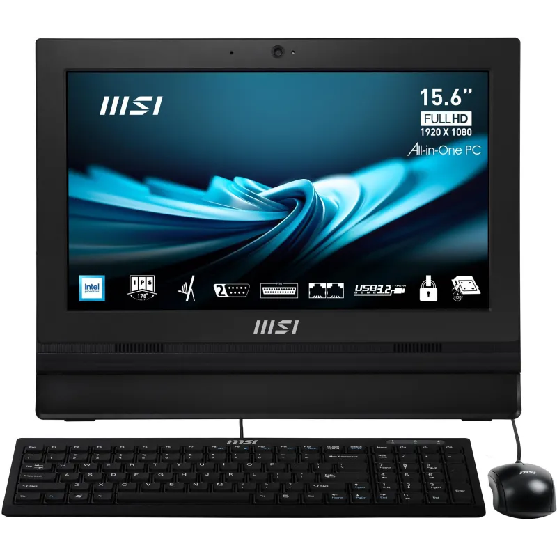 All in One MSI Pro AP162T-007XES Procesador Intel N-N100, Memoria RAM 4GB, Almacenamiento de 256GB SSD, Pantalla 15.6" Pulgadas Táctil FreeDOS Negro
