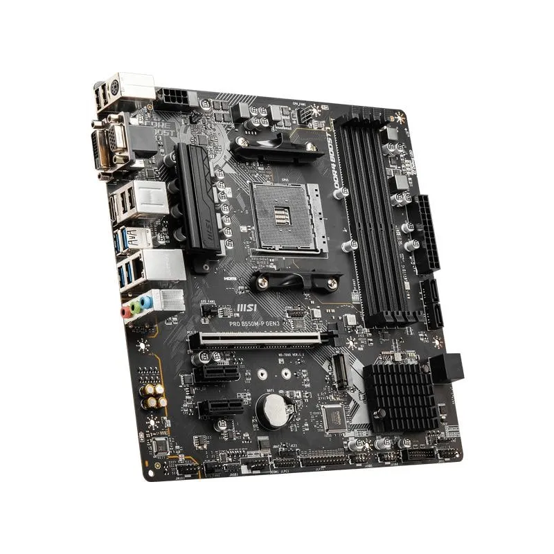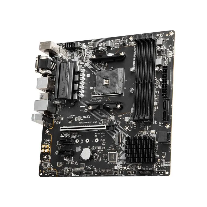 La placa base MSI PRO B550M-P GEN3 es la elección ideal para los entusiastas de la tecnología que buscan rendimiento y estabilidad. Equipada con un socket AM4 y compatible con la 3ra generación de procesadores AMD Ryzen™, esta placa es perfecta para construir una PC potente y versátil.