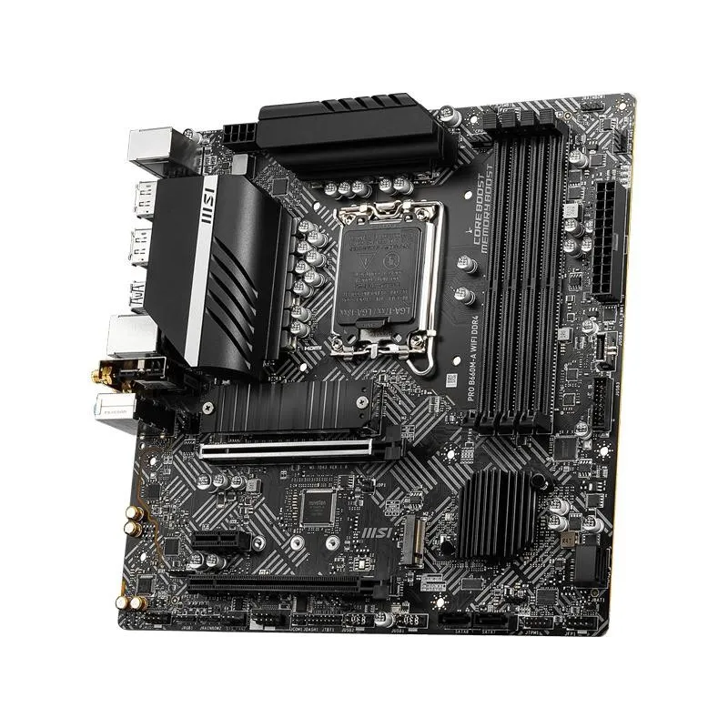 Descubre la placa base PRO B660M-A WIFI DDR4, diseñada para desatar el verdadero poder de tu procesador Intel® Core™ i9 con el socket LGA 1700. Experimenta una memoria sin precedentes con 4 ranuras DIMM que soportan DDR4-SDRAM y velocidades de reloj de hasta 4800 MHz, permitiendo una memoria interna máxima de 128 GB.
