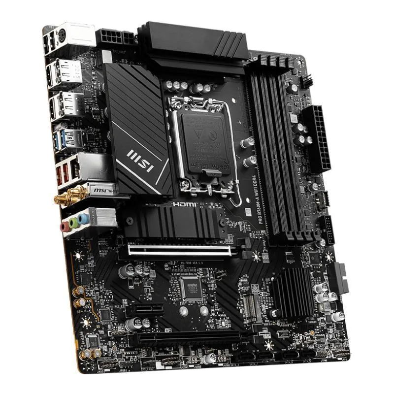 Placa Base MSI PRO B760M-A WIFI DDR4 rendimiento potente con Intel B760 Wi-Fi 6E 4 ranuras DDR4 hasta 128GB y compatibilidad con RAID ¡Optimiza tu PC!