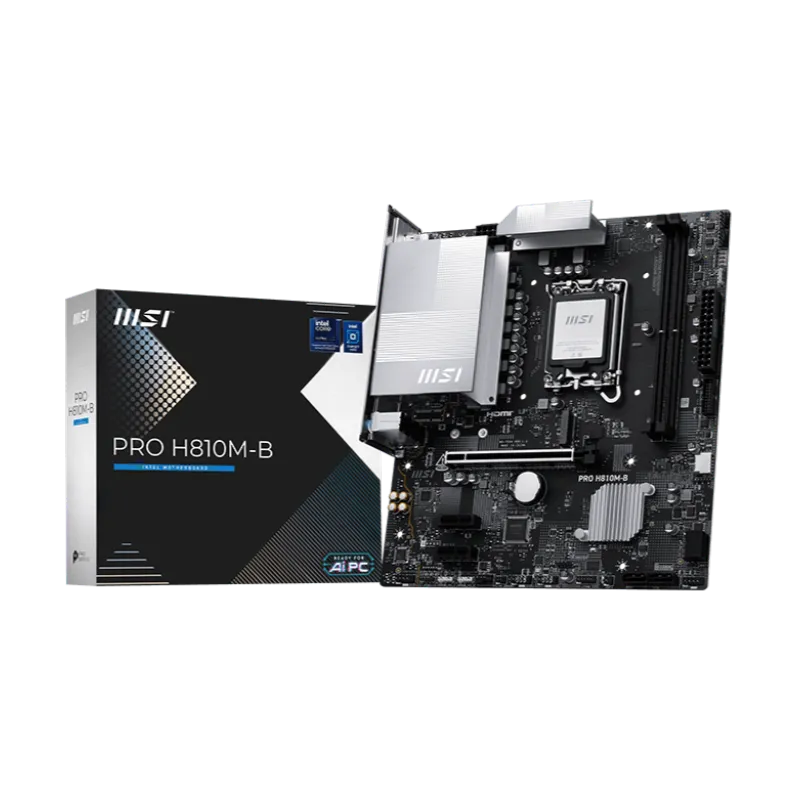 RENDIMIENTO DE ÚLTIMA GENERACIÓN CON COMPATIBILIDAD INTEL CORE ULTRA: La Placa Base MSI PRO H810M-B está diseñada para ofrecer compatibilidad total con procesadores Intel Core Ultra (Series 2), utilizando el nuevo socket LGA 1851. Esta combinación garantiza un rendimiento excepcional tanto en tareas cotidianas como en aplicaciones exigentes. Gracias al chipset Intel H810, el sistema mantiene una respuesta rápida y estable, ideal para usuarios que necesitan fiabilidad sin complicaciones. La arquitectura optimizada del chipset permite una gestión eficiente de los recursos del sistema, mejorando la experiencia general del usuario. Además, su diseño compacto micro ATX facilita la instalación en torres de tamaño reducido sin renunciar a características avanzadas.