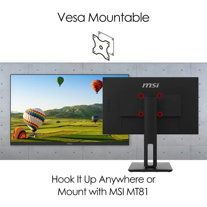 El MSI PRO MP242P es más que un monitor; es un centro de productividad y entretenimiento que se adapta a tu hogar con su diseño moderno y minimalista. Conecta tus dispositivos fácilmente a través de HDMI y disfruta de una configuración sin complicaciones. Es el momento de elevar tu experiencia visual con MSI, donde la calidad y la comodidad se encuentran en perfecta armonía.