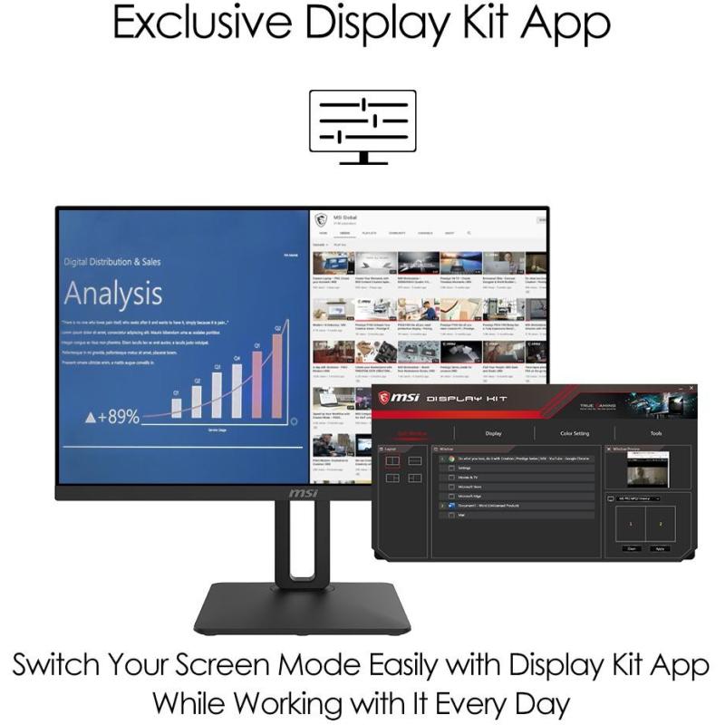 - El software exclusivo de MSI Display Kit te proporciona la herramienta más conveniente y una pantalla y modo de color adecuado para ti.
