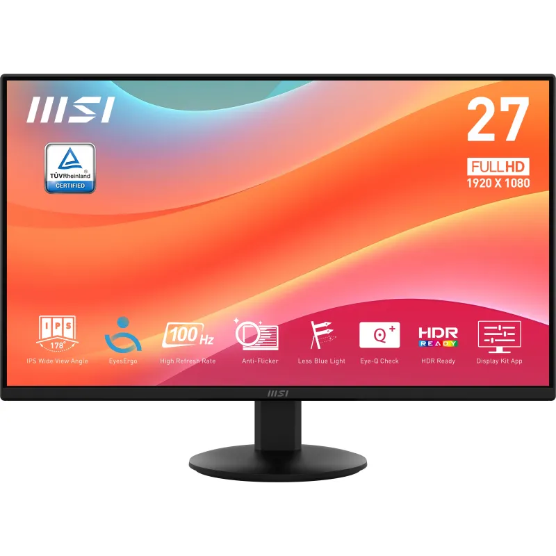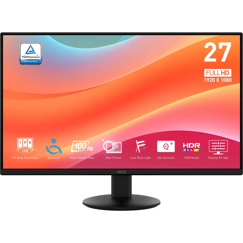 Monitor Msi Pro MP272L con pantalla IPS 27 pulgadas, resolución Full HD, frecuencia de actualización 100 Hz y tecnología antirreflectante