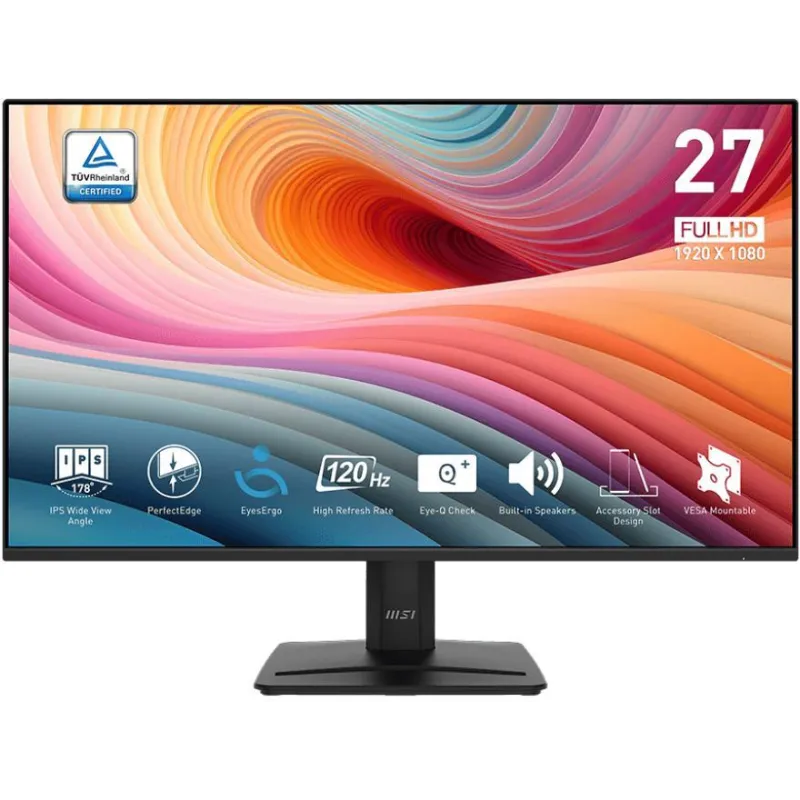 Monitor MSI PRO MP275 E2 pantalla IPS Full HD de 27" 120 Hz altavoces integrados tecnología Low Blue Light y montaje VESA para mayor confort.
