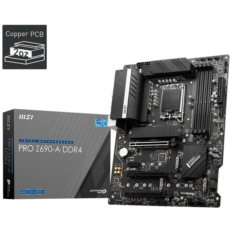 El PRO Z690-A DDR4 es la elección ideal para los entusiastas de la tecnología que buscan rendimiento y estabilidad. Equipado con un socket LGA 1700 compatible con los últimos procesadores Intel® Core™ i3, i5, i7, i9, este modelo es perfecto para construir una PC potente y versátil.