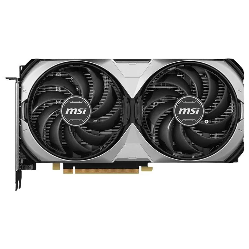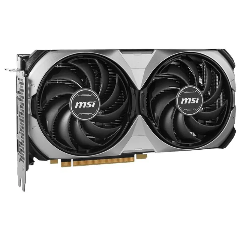 El diseño incluye un sistema de enfriamiento activo con la tecnología MSI TORX Fan 4.0 y 2 ventiladores, manteniendo la tarjeta a temperaturas óptimas incluso bajo carga pesada. Su estética en negro y plata y el factor de forma FH/HL la hacen compatible con una amplia gama de gabinetes de PC.