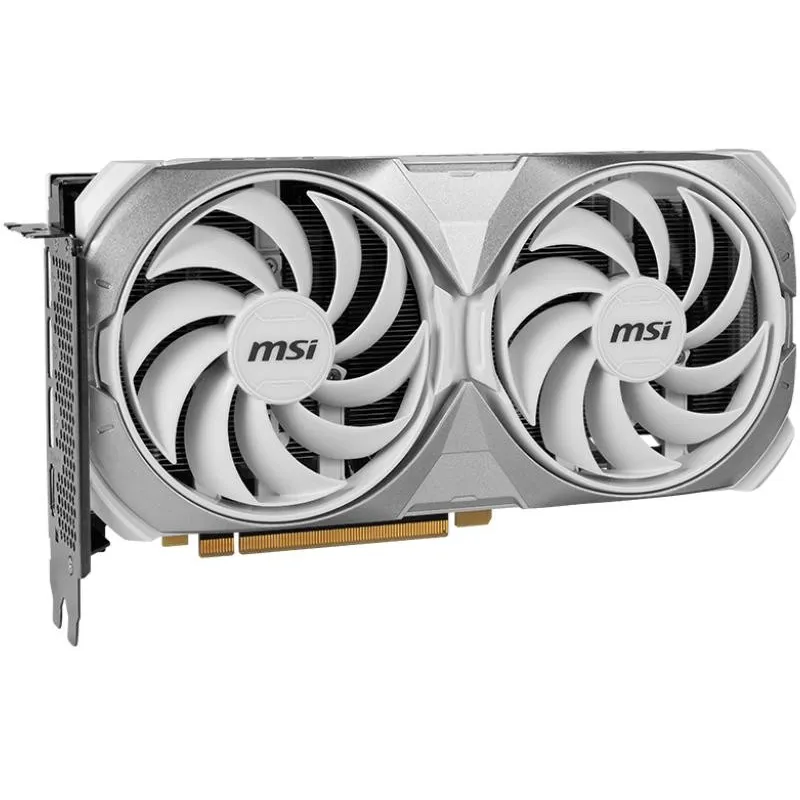 El diseño incluye un sistema de enfriamiento activo con la tecnología MSI TORX Fan 4.0 y 2 ventiladores, manteniendo la tarjeta a temperaturas óptimas incluso bajo carga pesada. Su estética en negro y plata y el factor de forma FH/HL la hacen compatible con una amplia gama de gabinetes de PC.