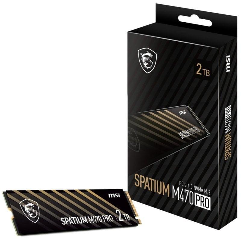 Disco Duro SSD Msi SPATIUM M470 PRO PCIe 4.0 NVMe M.2 2 TB alta velocidad de lectura de 6000 MB/s, color Negro