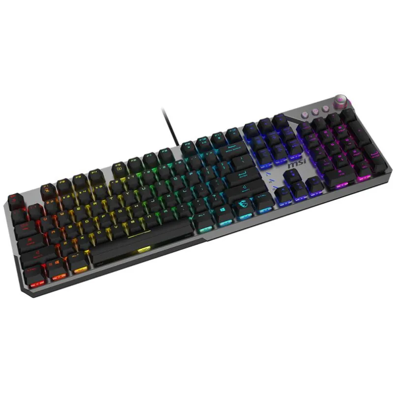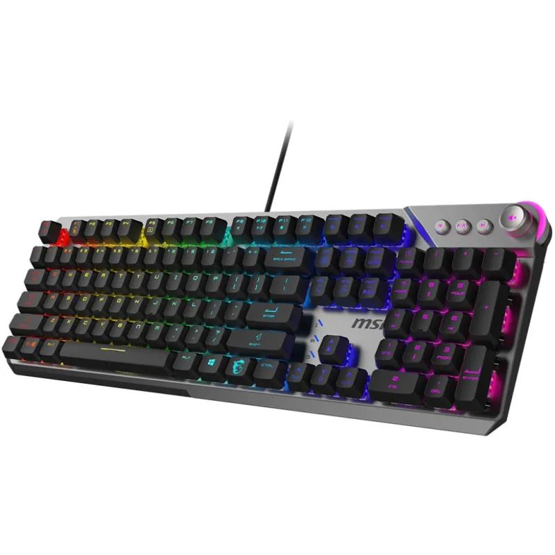 Teclado MSI STRIKE 600 SILENT ES con interruptor mecánico, retroiluminación LED RGB multicolor, diseño ergonómico y conexión USB