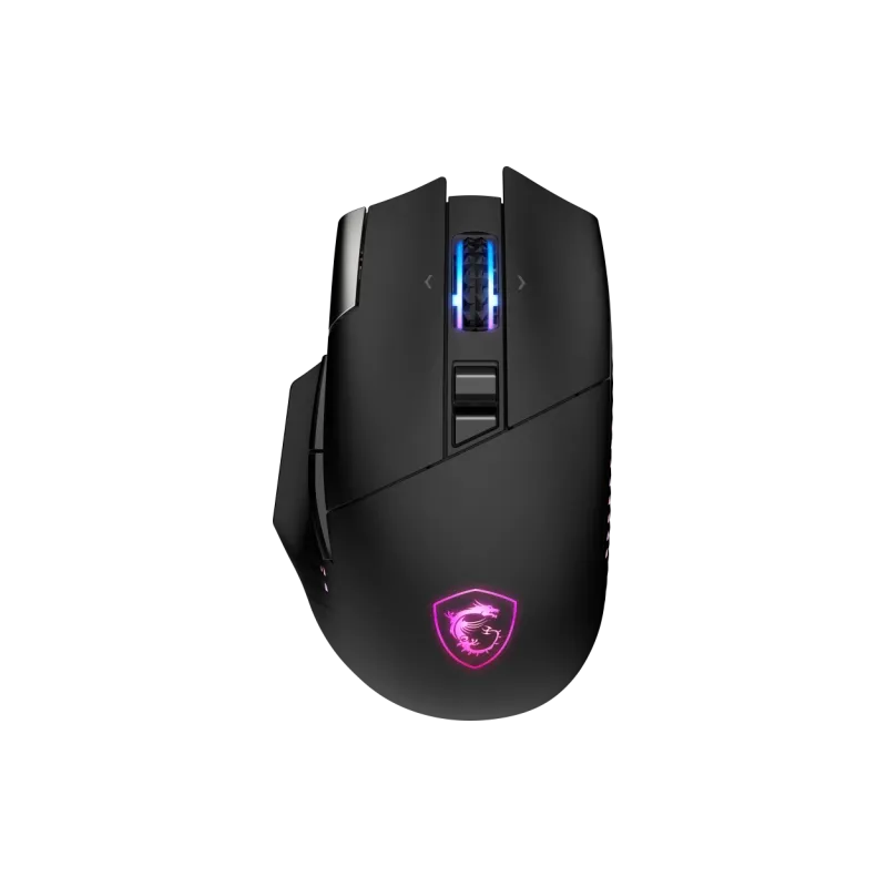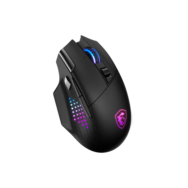 Ratón MSI Versa Pro Wireless con sensor óptico PixArt PAW-3395, batería 450mAh Lithium-Ion, conectividad 2,4 GHz, Bluetooth y 15 botones programables.