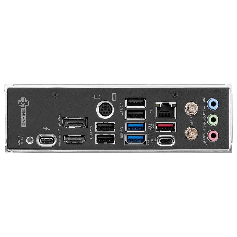 La conectividad es uno de los puntos fuertes de este modelo, ya que incluye Thunderbolt™ 4 con velocidades de hasta 40 Gbps, además de múltiples puertos USB de diferentes velocidades, incluyendo USB 20Gbps Tipo-C en el panel frontal para carga rápida. Además, el puerto LAN Intel® Killer™ E5000 de 5Gbps y la conectividad Wi-Fi 7 integrada ofrecen opciones avanzadas de conectividad a redes, junto con soporte para Bluetooth® 5.4.