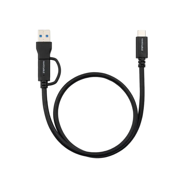 Nanocable 10.01.4800 Cable USB-C 3.2 Gen2 de 10 Gbps y 60 W, 4K/60 Hz, USB-C + USB-A/M a USB-C/M 50cm Negro