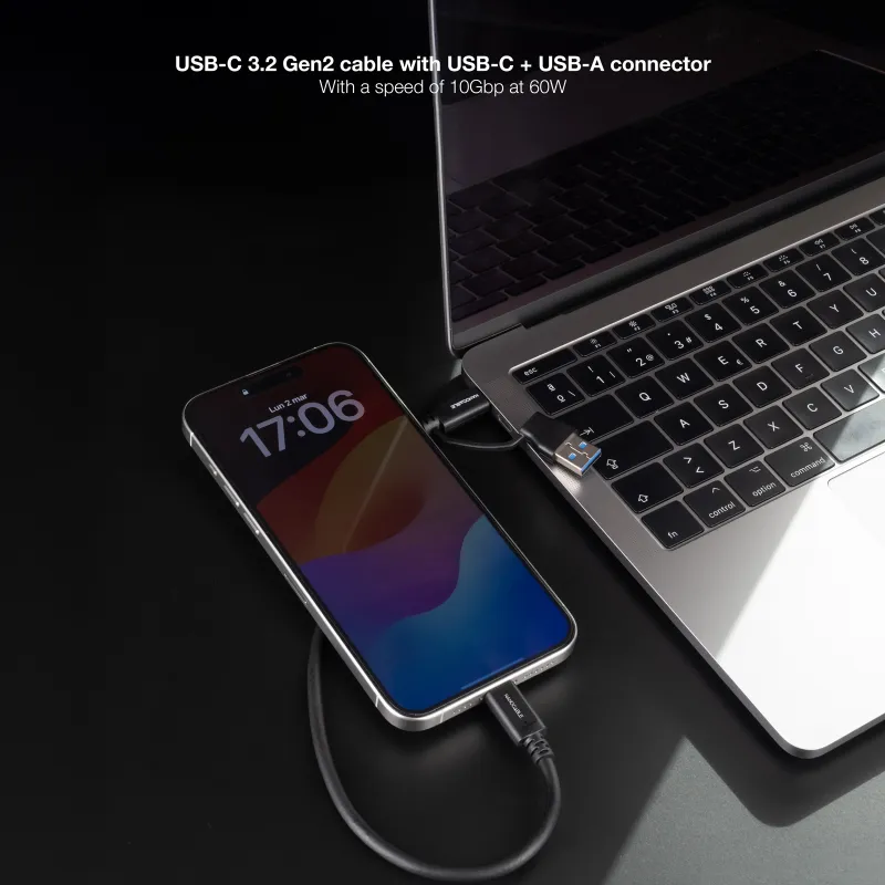 Cuando el puerto está cerca, una longitud corta reduce sobrante y hace el conjunto más cómodo en mesa, coche o mochila.