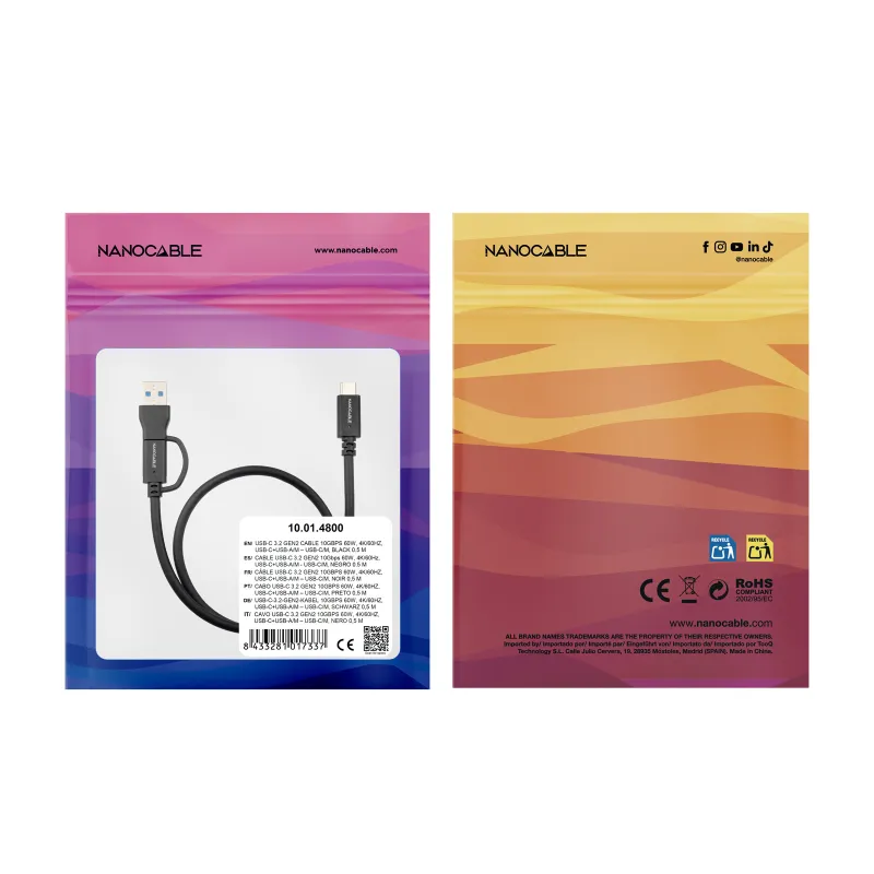 El Nanocable 10.01.4800 encaja si buscas un cable corto (0,5 m) para conexiones cercanas y compras por referencia. La decisión clave es confirmar el conector (USB-A o USB-C) en cada extremo: si no coincide con tus puertos, no te sirve.
