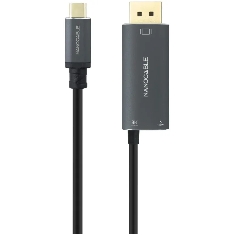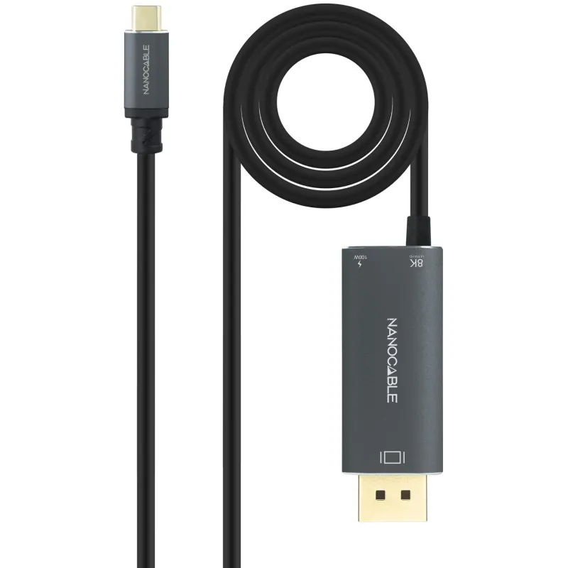 Cable conversor Nanocable 10.15.5012: USB-C a DisplayPort 1.4 con hasta 8K@60Hz y USB-C PD 100W para cargar a la vez. Tu USB-C debe sacar vídeo.