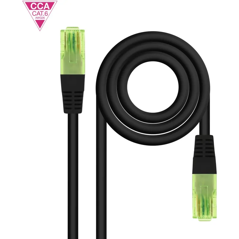 Cable de red Nanocable 10.20.1420-BK Cable RJ45 AWG26 Cat6 UTP CCA 20M Negro