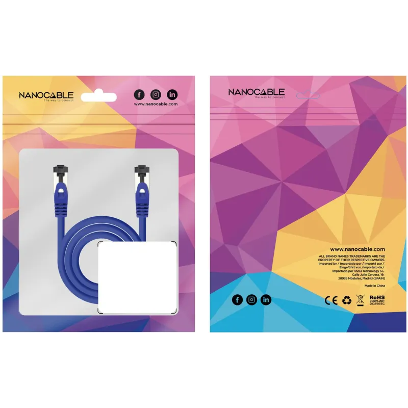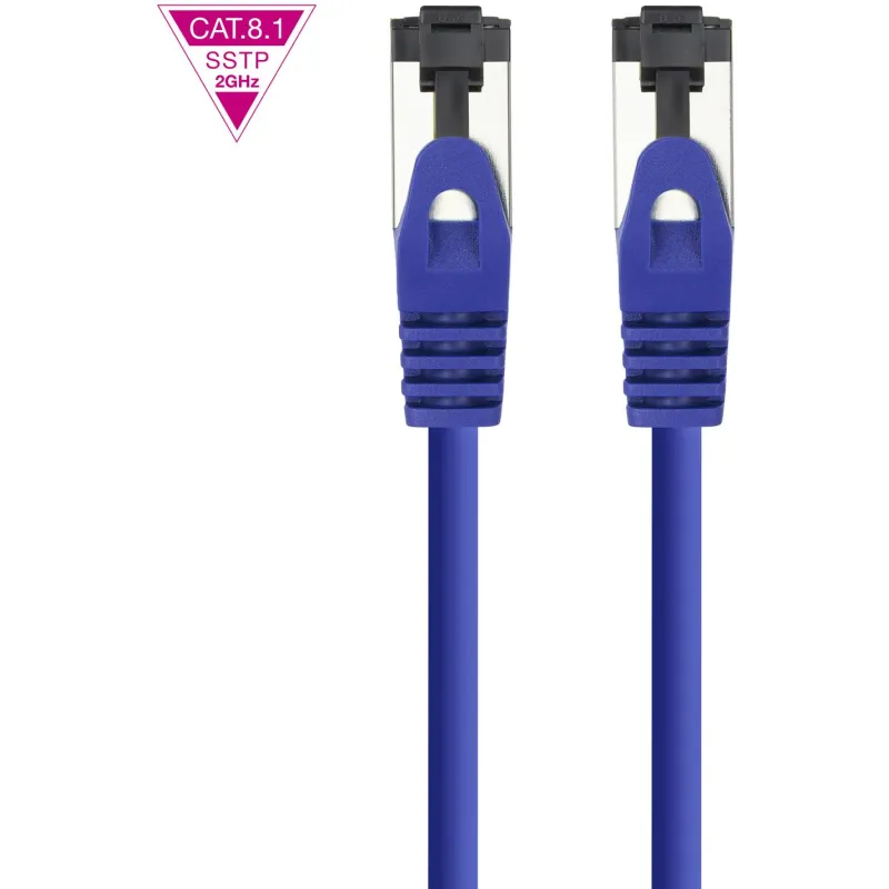 Cable de red Nanocable 10.20.2001-BL con conectores RJ-45 macho, cable Cat8.1, velocidad 40000 Mbit/s y blindaje S/FTP, color azul, 1 metro