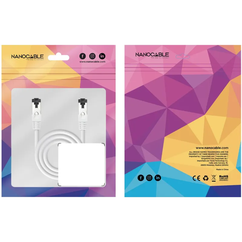 El cable de red Nanocable 10.20.2002-W cuenta con certificaciones CE, REACH y RoHS, lo que garantiza su conformidad con los estándares de calidad y seguridad europeos. Esto asegura que su cable ethernet cat8.1 no solo rinde al máximo, sino que también es seguro para su uso en todo tipo de instalaciones. Su capacidad para alcanzar una velocidad 40000 Mbit/s lo convierte en una herramienta fiable para usuarios exigentes que necesitan estabilidad y rapidez en sus conexiones diarias.