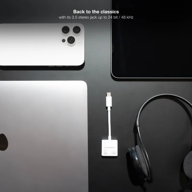 Cable Jack Nanocable 10.24.1206 con longitud de cable 0.11 m, conector USB tipo C macho y conector hembra de 3,5 mm, color blanco