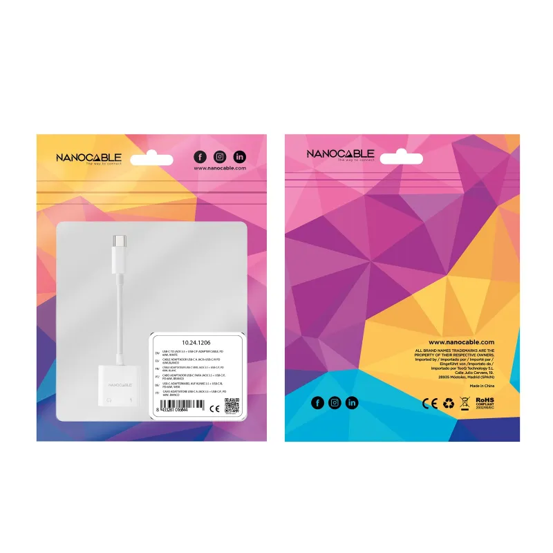Gracias a su diseño ergonómico y funcional, el Cable Jack Nanocable 10.24.1206 se presenta como una opción confiable y duradera. Su factor de forma recto en ambos conectores facilita el uso en espacios reducidos o con dispositivos que requieren conexiones alineadas. El producto se entrega en una bolsa de plástico que protege el cable durante el transporte y almacenamiento. Con un peso de solo 9 gramos, es extremadamente ligero, lo que lo hace ideal para usuarios que buscan soluciones portátiles. El conector USB tipo C macho y la longitud de cable de 0,11 m se combinan para ofrecer una experiencia de uso cómoda sin enredos ni exceso de cable. Este adaptador es perfecto para quienes desean mantener la compatibilidad con sus auriculares tradicionales en dispositivos modernos sin perder calidad de sonido ni funcionalidad.