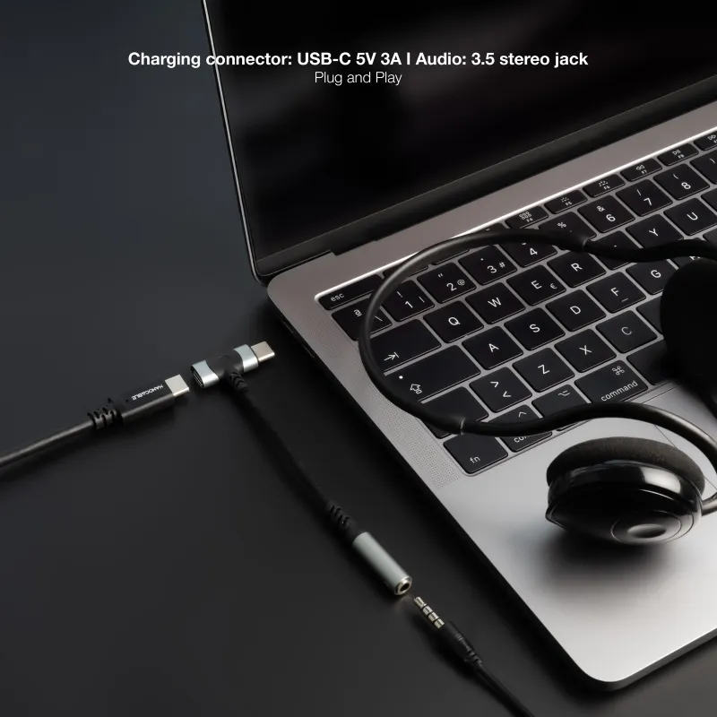 • Carga simultánea por USB-C (hembra): puedes escuchar y cargar a la vez, sin elegir entre batería o auriculares.