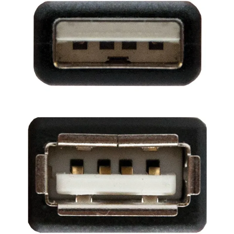Cable prolongador USB 2.0 con conector tipo A macho en un extremo y tipo A hembra en el otro