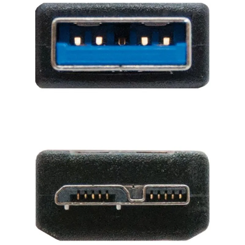 - Cable USB 3.0 con conector tipo A(USB 3.0, 9Pin) macho en un extremo y Micro USB 3.0 tipo B(USB 3.0, 9Pin) macho en el otro