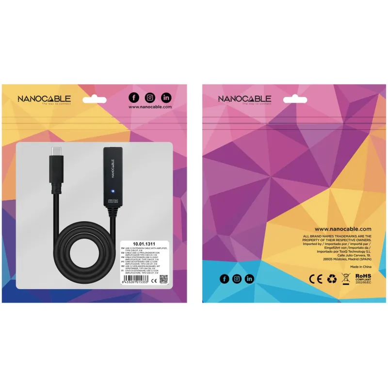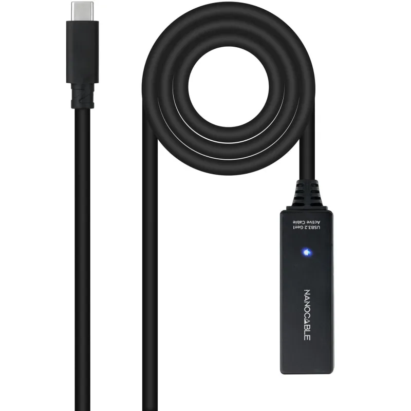Nanocable 10.01.1311 Cable USB 3.2 Gen1 Prolongador con Amplificador USB-C a USB-C Macho/Hembra 5M Negro