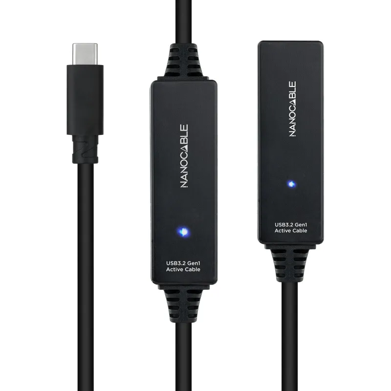 Nanocable 10.01.1312 Cable USB 3.2 Gen1 Prolongador con Amplificador USB-C a USB-C Macho/Hembra 10M Negro