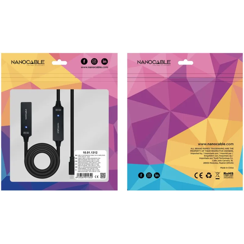 CALIDAD CERTIFICADA Y PRESENTACIÓN PRÁCTICA: El Cable USB Nanocable 10.01.1312 cuenta con certificación RoHS, lo que garantiza que cumple con las normativas medioambientales europeas. Esta certificación asegura que el producto está libre de sustancias peligrosas, haciendo de él una opción más segura y responsable. Además, su presentación en envase para colgar facilita su almacenamiento y exhibición en tiendas. El embalaje también protege el cable durante el transporte. Con un peso total de 408 g y dimensiones adecuadas, es fácil de manejar y transportar. Es una opción completa, tanto en funcionalidad como en presentación.