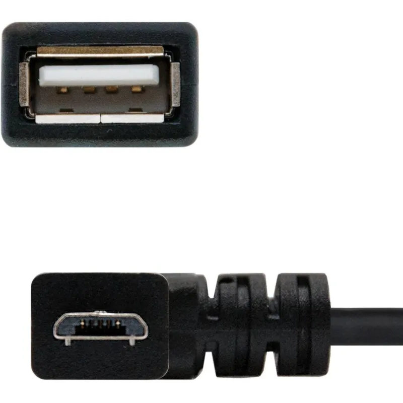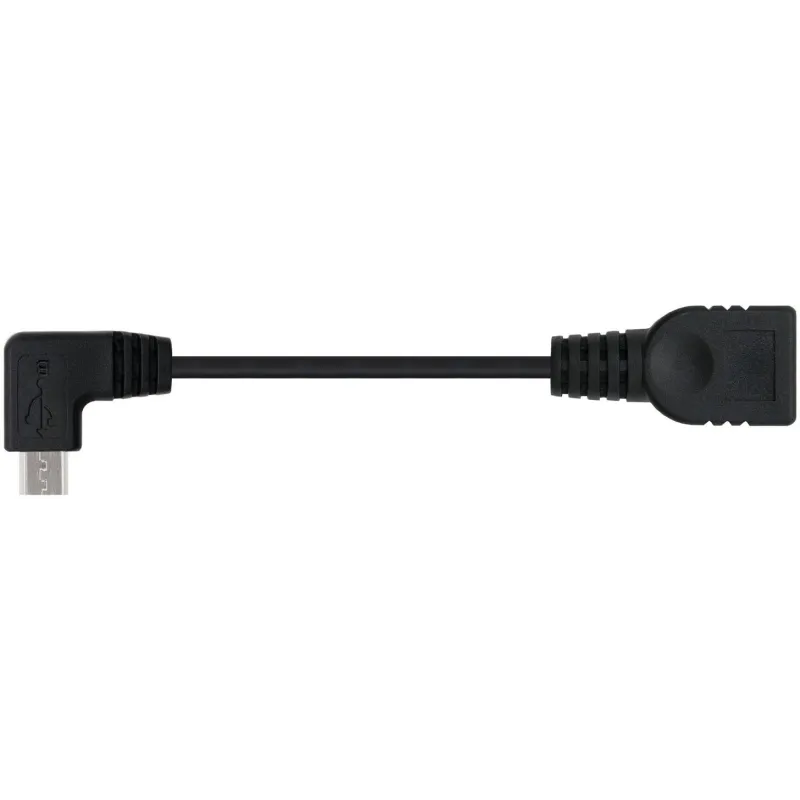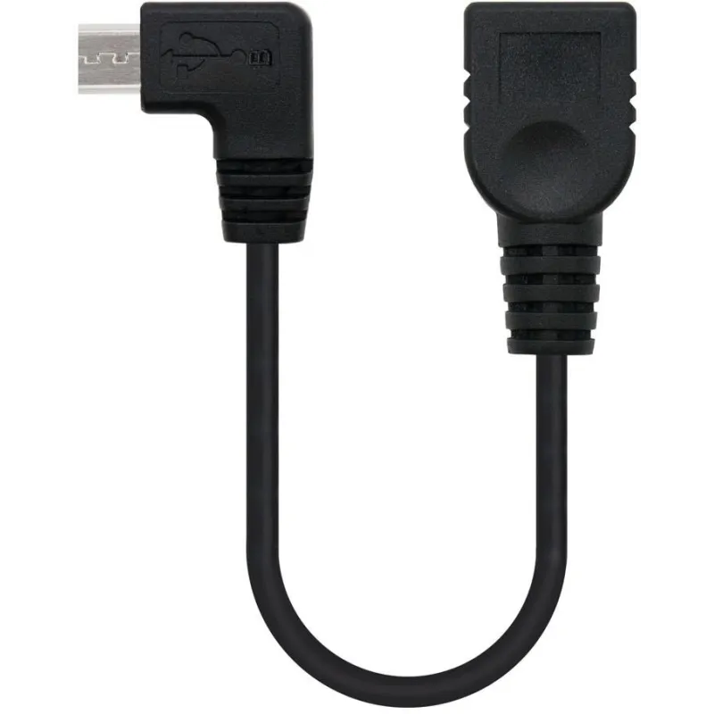 Cable USB 2.0 OTG con conector acodado tipo Micro USB B macho en un extremo y tipo USB A hembra en el otro