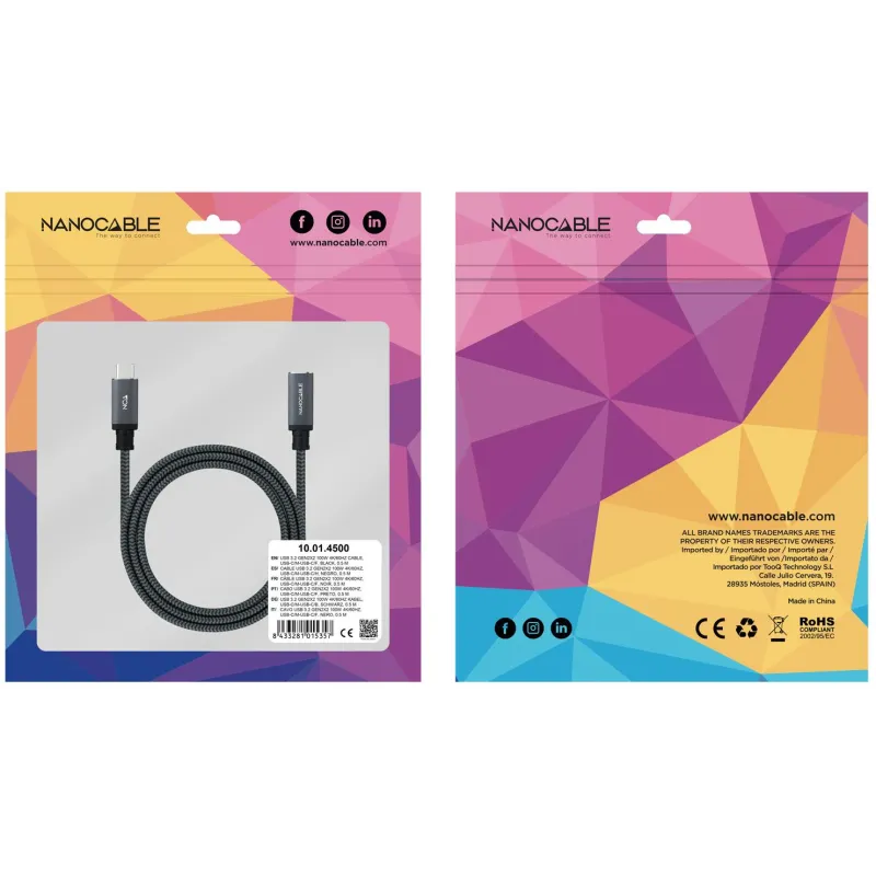 CUMPLIMIENTO CON NORMATIVAS AMBIENTALES: El Cable USB Nanocable 10.01.4500-COMB cuenta con la certificación RoHS, lo que garantiza que cumple con las normativas europeas sobre restricción de sustancias peligrosas. Esto lo convierte en una opción responsable para quienes buscan productos respetuosos con el medio ambiente. Además, su empaque tipo colgador facilita su almacenamiento y presentación en puntos de venta. Este detalle demuestra el compromiso de la marca con la calidad y la sostenibilidad. El Cable USB Nanocable 10.01.4500-COMB no solo ofrece alto rendimiento y potencia, sino también seguridad y conciencia ecológica.