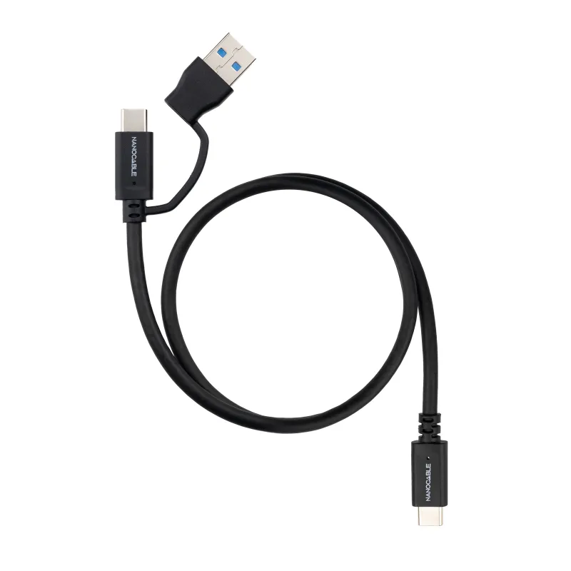 Nanocable 10.01.4801 Cable USB-C 3.2 Gen2 de 10 Gbps y 60 W, 4K/60 Hz, USB-C + USB-A/M a USB-C/M 1M Negro
