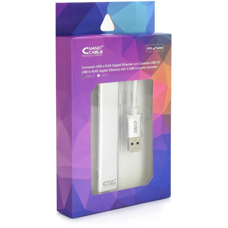 Nanocable 10.03.0403 Adaptador USB-A a RJ-45/USB-A Ethernet Gigabit 15cm Plata