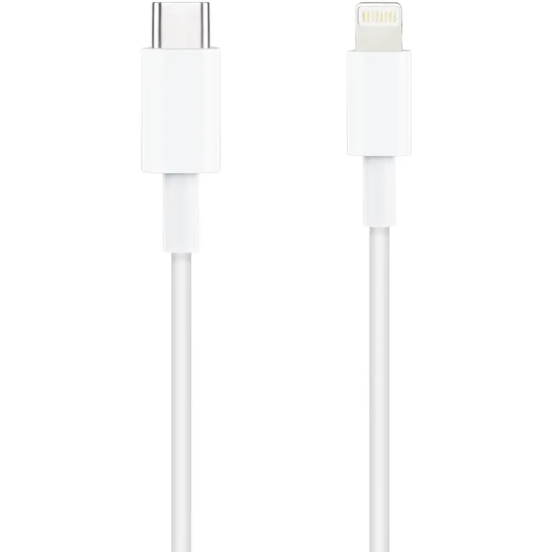- Cable Lightning con conector tipo Lightning macho en un extremo y conector USB-C macho en el otro