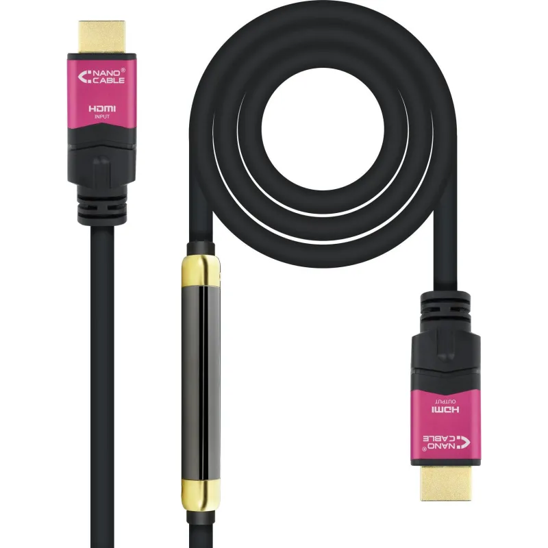 Nanocable 10.15.3730 Cable HDMI 2.0 4K@60Hz con Repetidor Conexión Macho a Macho con Longitud de 30 Metros Color Negro y Rosa