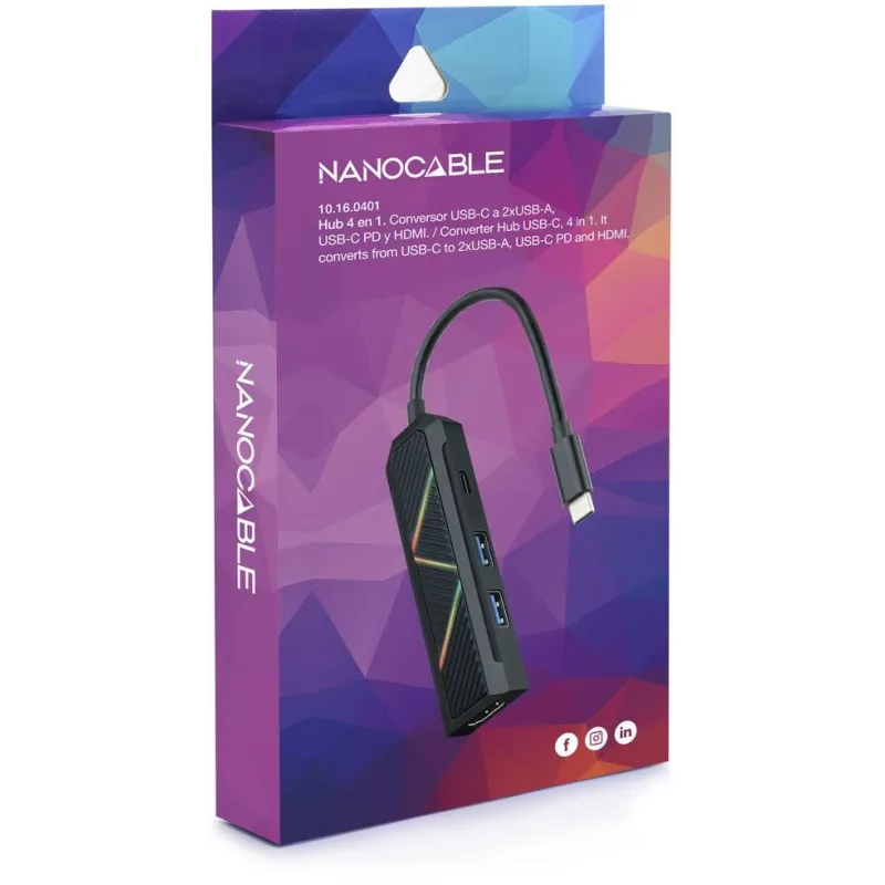Nanocable 10.16.0401 HUB USB-C 3.0 a USB-A 3.0/USB-C 3.0/HDMI 4 Puertos 15 cm Negro