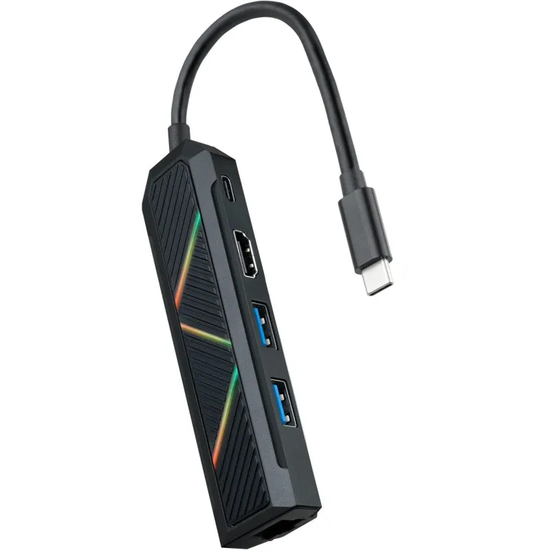 Hub USB-C 5 en 1, Conversor USB-C a 2xUSB-A, USB-C PD, HDMI, RJ45.
