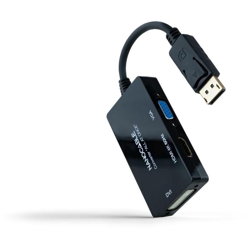 Nanocable 10.16.3301-ALL Conversor DisplayPort a HDMI 4K/DVI-D/VGA 20cm Negro