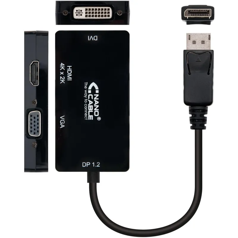 Nanocable 10.16.3301-BK Conversor DisplayPort a VGA/DVI/HDMI 15cm Negro